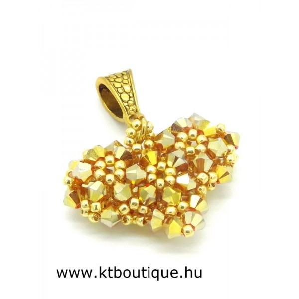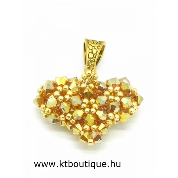 Leírás, megjelenés: Bájos szívecske formájú nyaklánc, mindenki kedvence. A térbeli fűzésmintával készült medált különleges bevonatú eredeti Swarovski kristályok díszítik. Felvéve minden mozdulat esetén káprázatosan csillog és minden ruhához kiválóan társítható. A medálhoz lánc külön kérhető, de saját aranyláncon is viselhető.