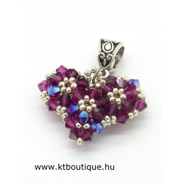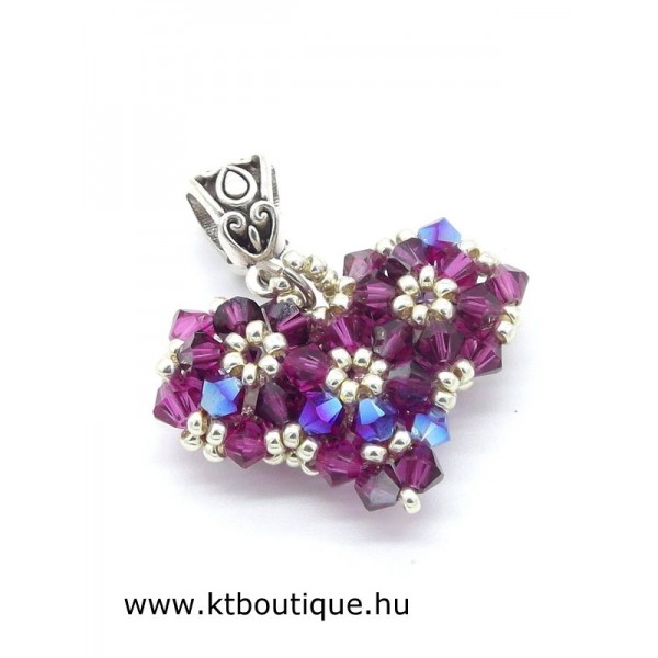Leírás, megjelenés: Bájos szívecske formájú nyaklánc, mindenki kedvence. A térbeli fűzésmintával készült medált különleges bevonatú eredeti Swarovski kristályok díszítik. Felvéve minden mozdulat esetén káprázatosan csillog és minden ruhához kiválóan társítható. A medálhoz lánc külön kérhető, de saját ezüstláncon is viselhető.