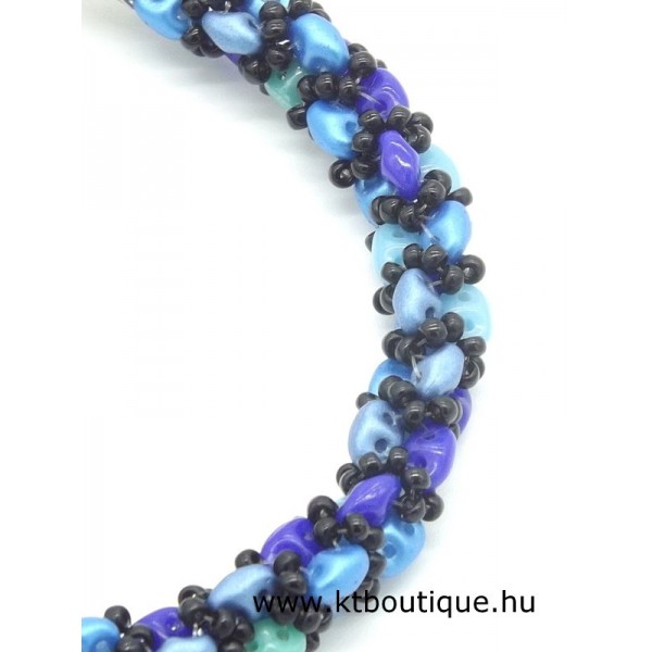 Leírás, megjelenés: Csipkés hatású, aprólékos kidolgozású struktúraminta díszíti a karkötőt, melyet sima fekete részek tagolnak, így a színes gyöngyök és a mintázat szépen kiemelkedik. Mutatós viselet élénk, bevállalós szinkombinációban. Az ár a karkötőre vonatkozik, a képen látható lánc külön rendelhető.