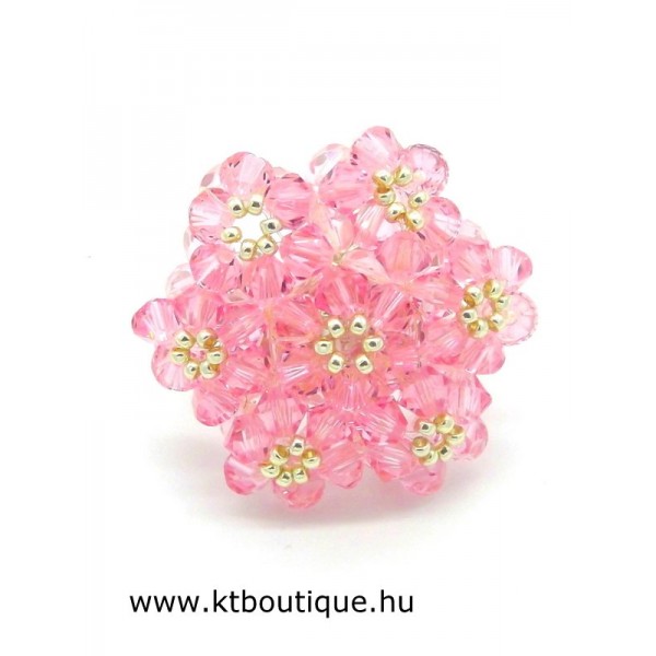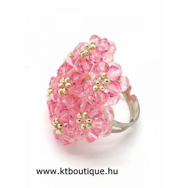 Leírás, megjelenés: Csillogó és csábos, 42 db csodás rózsaszín eredeti Swarovski kristály felhasználásával fűzött gyűrű, mely ebben a színben kicsit romantikussá, ugyanakkor trendivé teszi a modellt. A nagy átmérő ellenére kényelmes viselet, jól mutat vastagabb ujjakon is.