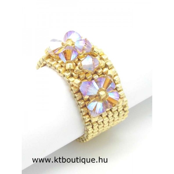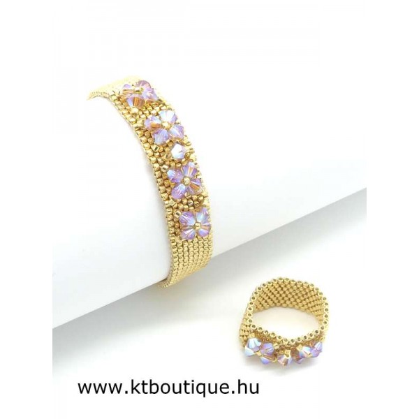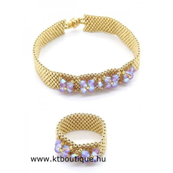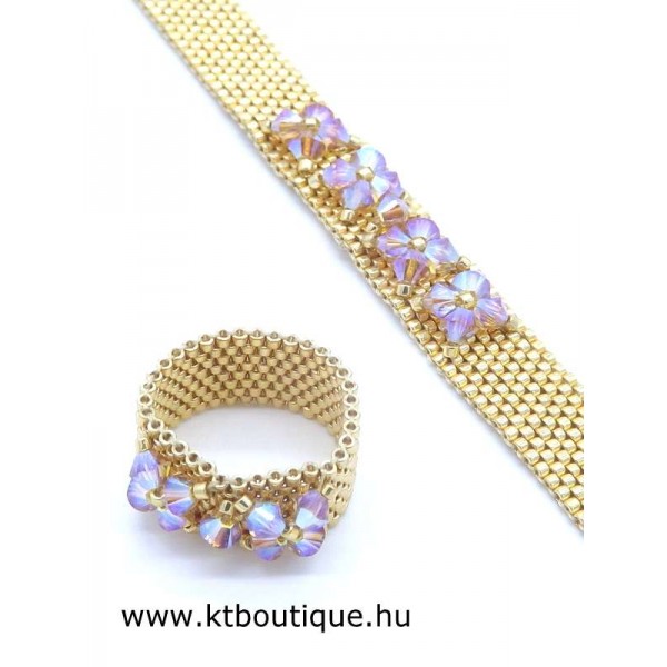 Leírás, megjelenés: egyszerű, de mégis látványos a gyűrű és a hozzáillő karkötő párosa, mert az eredeti Swarovski kristályok minden kézmozdulatra csillognak a fényben és vonzzák a tekintetet. Az egyes darabok alapja fényes tartós bevonatú japán delica gyöngyökből készül, szép egyenletes felületet biztosít a kristály díszítéshez.