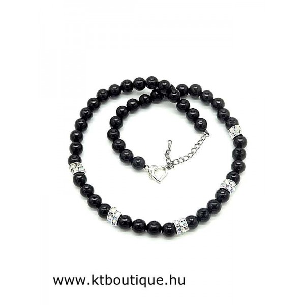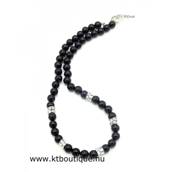 Leírás, megjelenés: ez az ékszer maga az örök elegancia. Az ónix golyókat strasszos köztesekkel társítottam. A gyöngysor egyszerű, ezért minden ruházathoz illik, igazi nőies darab.