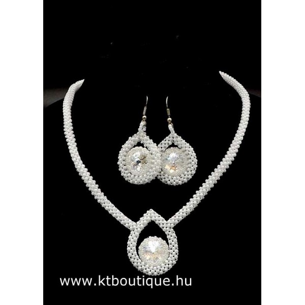 Leírás, megjelenés: Rendkívül mutatós ékszerszett hűs fehérben. Igazi klasszikus., soha nem megy ki a divatból és a színe mindenféle színű ruházathoz illik. Ideális viselet azoknak, akik kedvelik a nőies eleganciát.