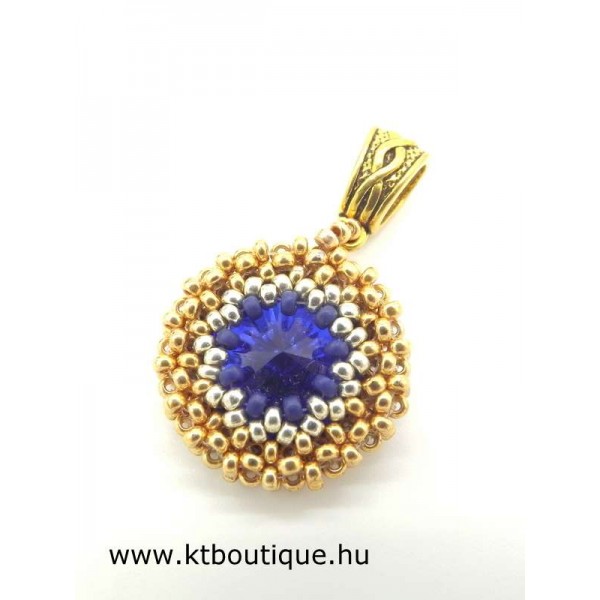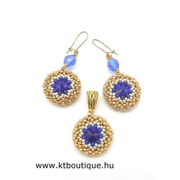 Leírás, megjelenés: pici, de szépen csillogó elemek alkotják a szettet, minden elemnek eredeti mélykék Swarovski kristály csillog a közepén. Az ár medálra és egy pár fülbevalóra vonatkozik. Lánc külön kérhető, de saját arany/ezüst láncra is teheted.
