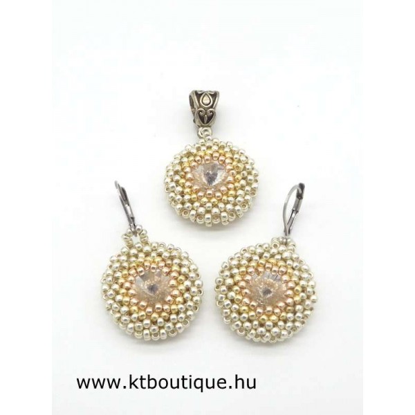 Leírás, megjelenés: pici, de szépen csillogó elemek alkotják a szettet, minden elemnek eredeti kristály Swarovski kristály csillog a közepén. Az ár medálra és egy pár fülbevalóra vonatkozik. Lánc külön kérhető, de saját arany/ezüst láncra is teheted.