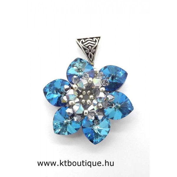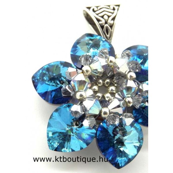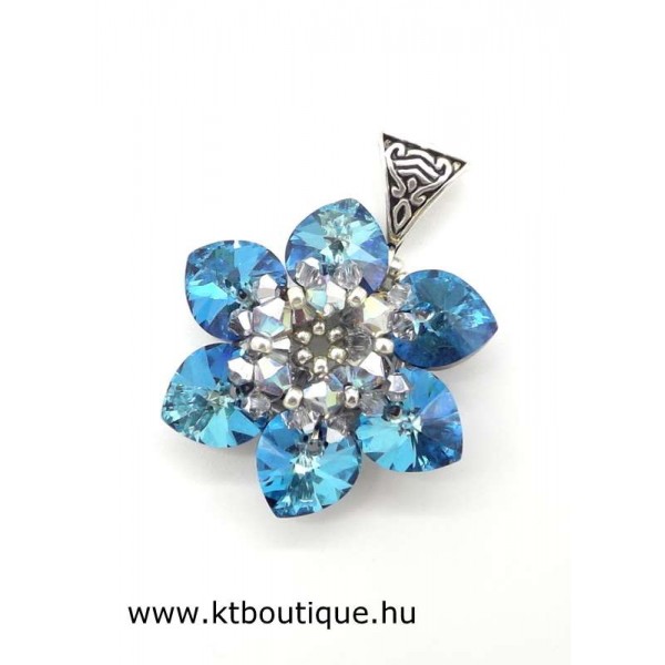 Leírás, megjelenés: A virágmedál szinte minden része eredeti Swarovski kristály, ennek megfelelően fénylik is rendesen. Nem túl nagy a mérete, de azonnal magához vonzza a tekintetet. Lánc külön kérhető, de saját láncon is jól mutat.