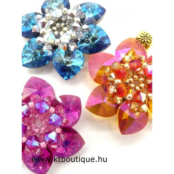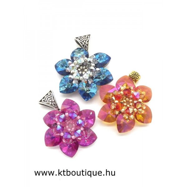 Leírás, megjelenés: A virágmedál szinte minden része eredeti Swarovski kristály, ennek megfelelően fénylik is rendesen. Nem túl nagy a mérete, de azonnal magához vonzza a tekintetet. Lánc külön kérhető, de saját láncon is jól mutat.